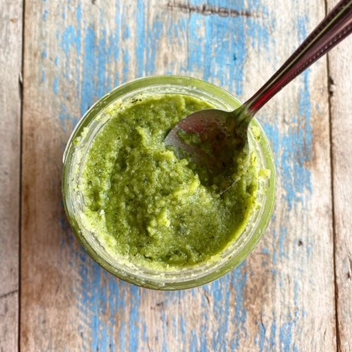 Desde que eu me conheço por gente existe esse tempero na minha família, o tempero verde.No dia que minha mãe faz, é quase um evento. Descasca-se muito alho, higieniza-se muita salsinha, muita manjerona. Maneira-se o sal. Tudo a olho, sem receita. Processa tudo, guarda em potes, distribui pra família. É mais que um tempero, é um elo, um talismã que nos une.